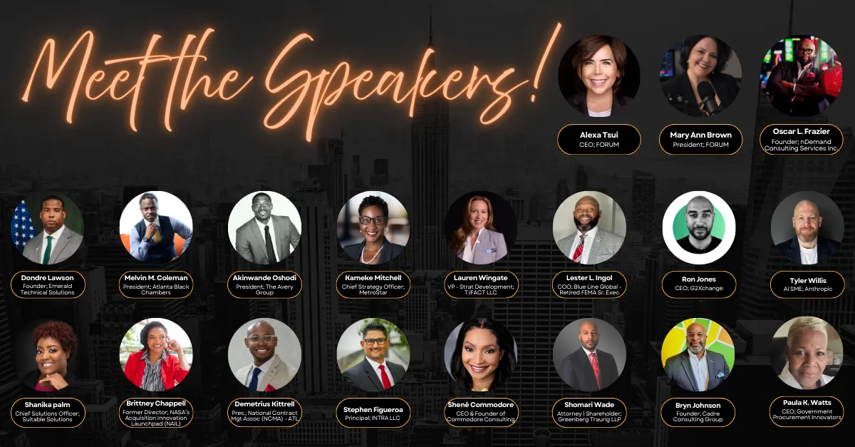 Speakers & Panelists Include: Senior federal executives, leaders from major primes, GovCon trainers, membership org executives, and founders with recent wins.